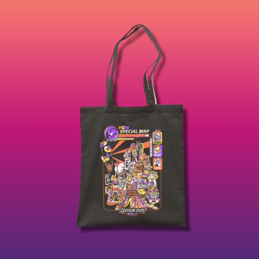 Le totebag créé par PAIHEME pour l'édition 2025 de la Paris Games Week noir est composé à 100% de coton est un accessoire très pratique et qualitatif. Le visuel de PAIEME a été apposé spécialement pour les gamers et les fans de la PGW.